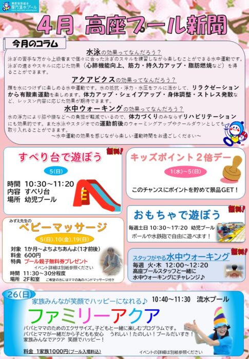 (注)毎週土曜日・日曜日 10:00~10:20間は水泳教室実施の為、利用エリアが狭くなっております。