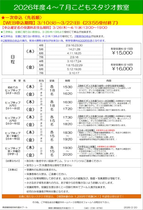 ●2026年度 こどもスタジオ教室 案内