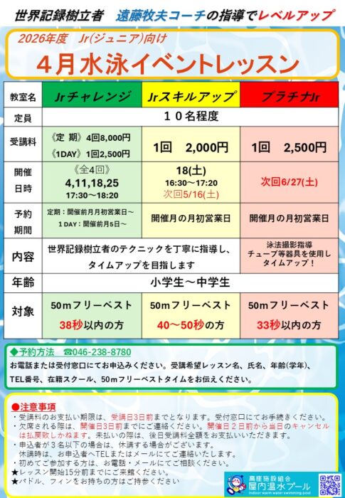 世界記録樹立者“遠藤コーチ”による特別スイムレッスンのご案内