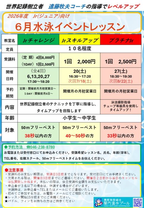 世界記録樹立者“遠藤コーチ”による特別スイムレッスンのご案内